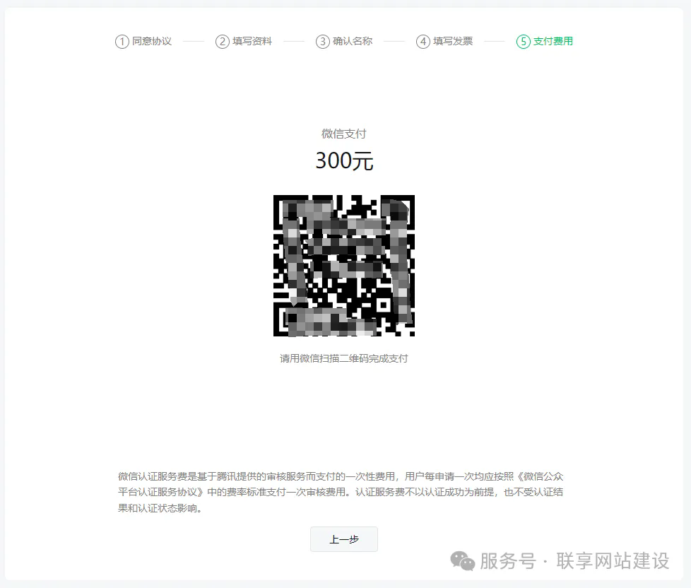 6、點(diǎn)擊下一步,進(jìn)入最后環(huán)節(jié),填寫發(fā)票信息,納稅識(shí)別號(hào)(營(yíng)業(yè)執(zhí)照上的統(tǒng)一社會(huì)信用代碼)支付認(rèn)證審核費(fèi)用300元,提交后注意接聽認(rèn)證審核電話